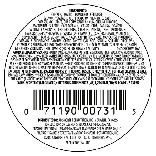 Rachael Ray Nutrish Natural Wet Cat Food, Chicken & Salmon Catterole, Grain Free, 2.8 oz tub, Pack of 24