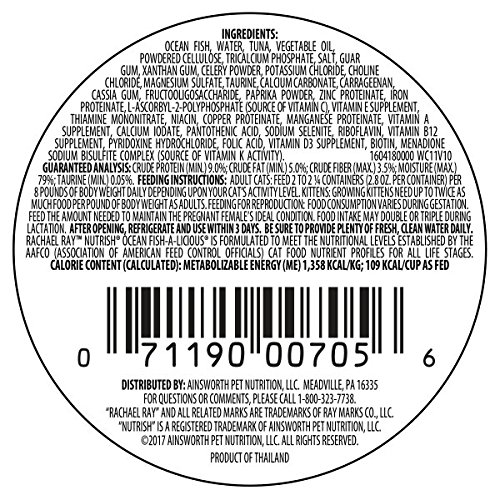 Rachael Ray Nutrish Natural Wet Cat Food, Ocean Fish-A-Licious, Grain Free, 2.8 oz tub, Pack of 24