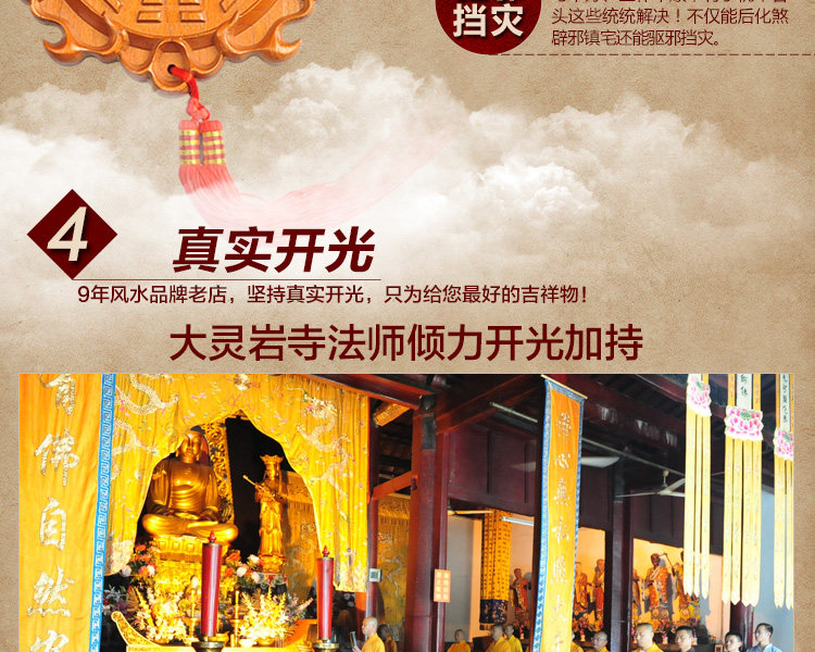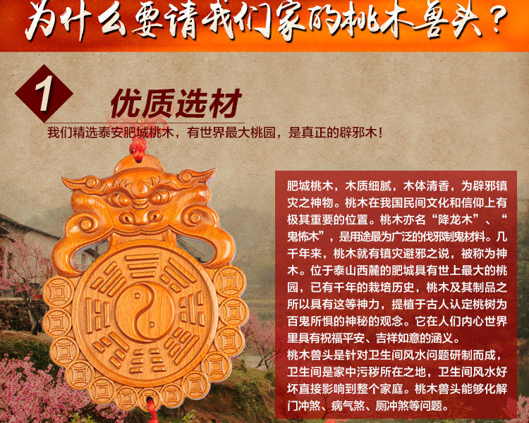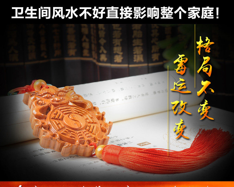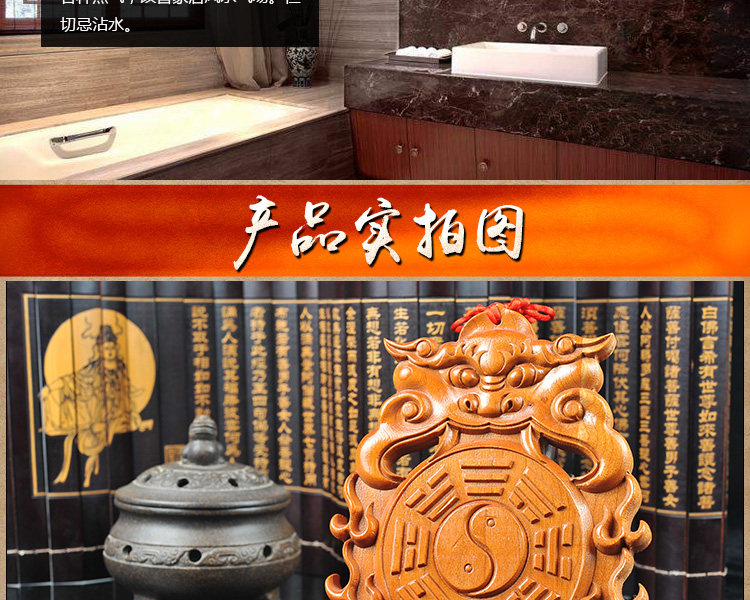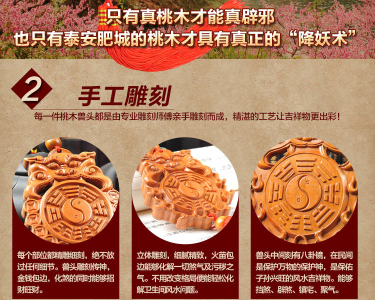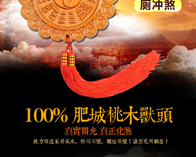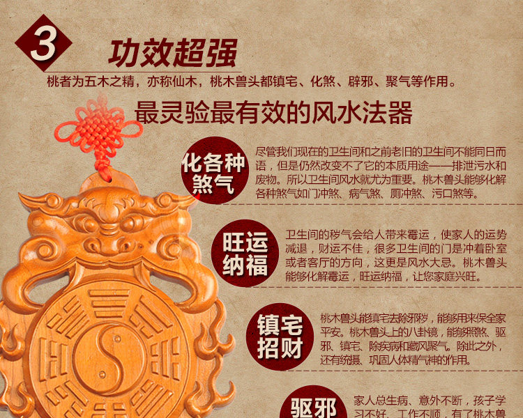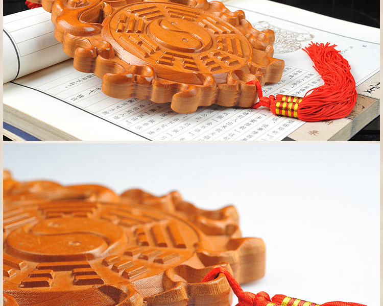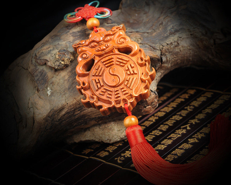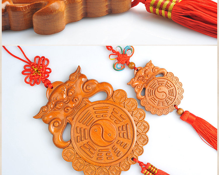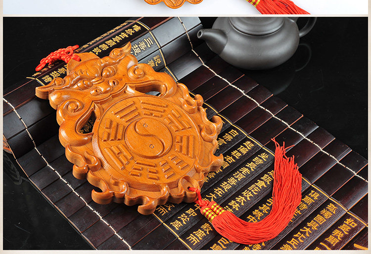 天然桃木兽头八卦镜挂件