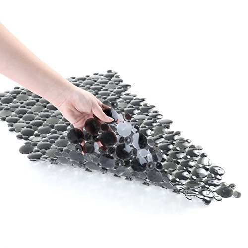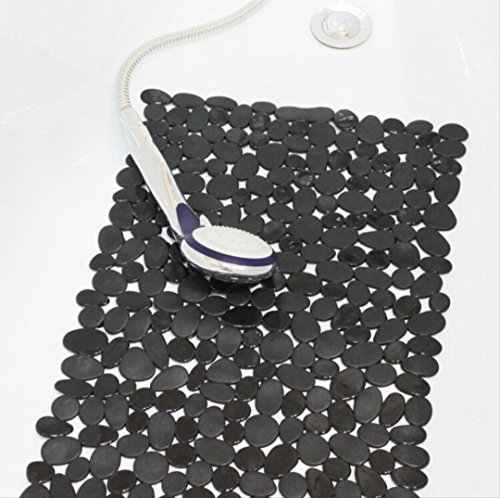 Anti-Slip Anti-Bacterial Stone Bath Mats,Slip-Resistant Shower Mats( Black,16 W x 35 L Inches)