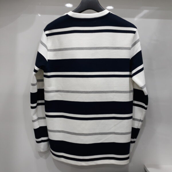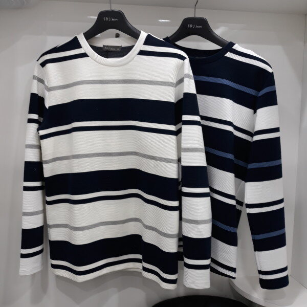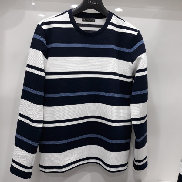고급스럽고 도톰한 분또 소재의 스트라이프 디자인의 라운드넥 티셔츠.변형된 스트라이프가 청바지와 착장시 포멀하면서도 캐쥬얼 스타일링 가능