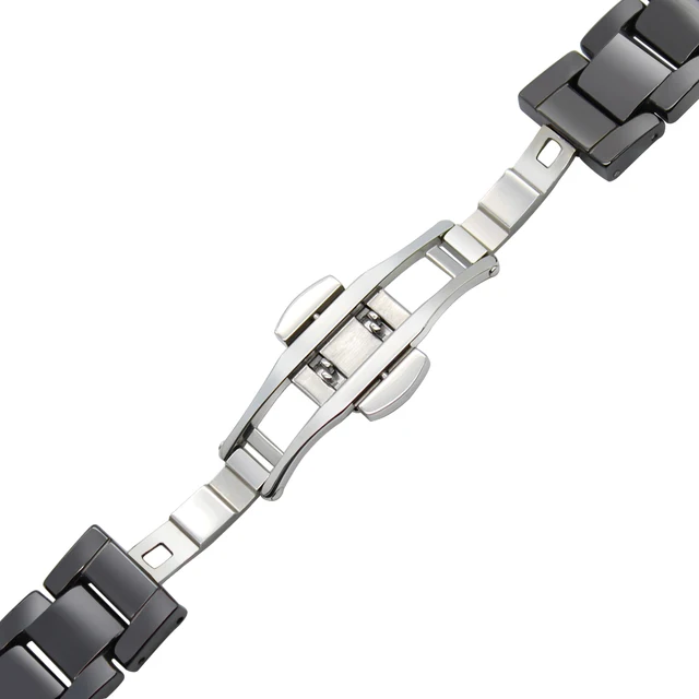 | [해외] 전체 세라믹 손목 시계 + 도구 조약돌 시간 라운드 14 미리메터 여성의 시계 밴드 butterfly 버클 스트랩 손목 팔찌 블랙 화이트 |