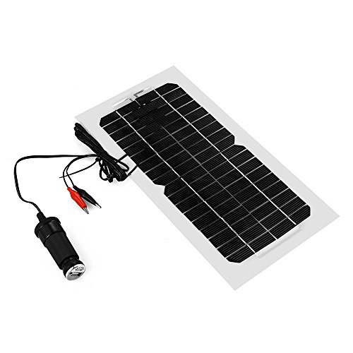 -. Feature : Material: Mono crystal solar panel; Max output: 300mA 18V 10000Lux; Power: 5.5W Max / High quality, imported high conversion efficiency panel; Convenient and practical; Safe and friendly environmental; Can work in bad condition; Long span life. / Fits 12V battery, backflow protection; Easy to use: Plug into cigarette lighter. / This product is designed to supply power for outdoor 12V applications, such as automobile, Camping car, marine, Motor etc. It can charge your motor battery and keep enough capacity to protect the battery. It is convenient, safe to maintain your car battery anywhere. / Support 5V output, for 5V digital products like Smartphone and other 5V USB charged devices.