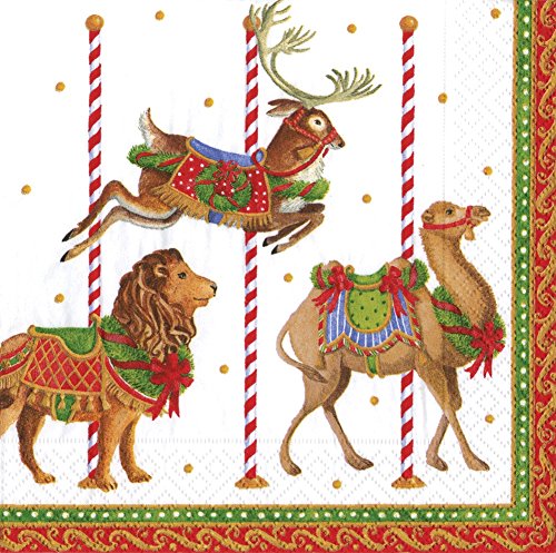 - Entertaining with Caspari Merry Go Round Luncheon Napkins, White, Pack of 20