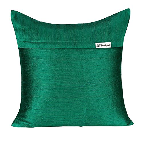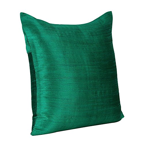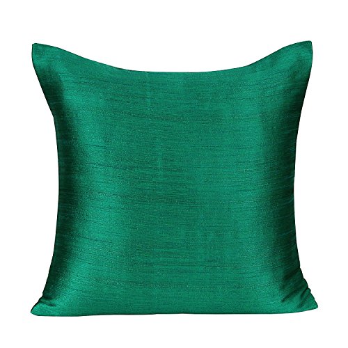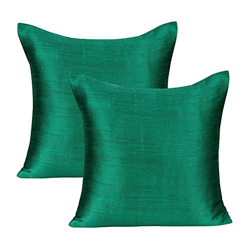 Emerald Green Green Pillow Covers (Set of 2 Covers, Faux Raw Silk, Emerald Green Green, 22x22 inches)