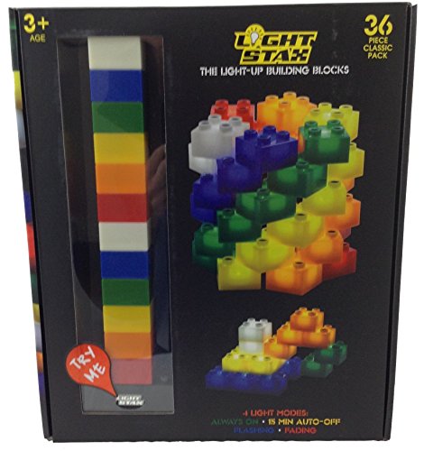 -. Binding : Toy -. Brand : Light Stax(R) -. Color : multi-colored -. EAN : 5230730032308 -. Feature : Lights up when connected to a power base or any lit Stax / Illuminated construction blocks that use LED technology / 100% compatible with existing traditional building blocks / No special connectors or wires are needed -. IsAdultProduct : 0 -. Label : Light Stax(R) -. Manufacturer : Light Stax(R) -. Model : TS0229 -. MPN : 1003 -. PackageQuantity : 1 -. PartNumber : 1003 -. ProductGroup : Toy -. ProductTypeName : TOYS_AND_GAMES -. Publisher : Light Stax(R) -. Studio : Light Stax(R) -. Title : LIGHT STAX(R) Illuminated Blocks Classic Set (36 Pieces) -. UPC : 787799750025