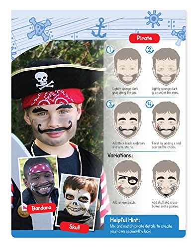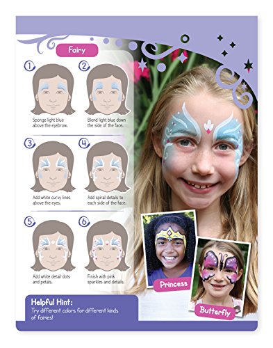 Easy, step-by-step directions show exactly how to create face-painting looks that children will love! More than 35 designs include full-face disguises, as well as kid-friendly symbols, accents, and icons for just a touch of creative color. The set includes six water-based face paints that apply easily, dry quickly, and wash away cleanly, so there's less mess at every step of the process. The paint tray, brush, and sponge store neatly right in the cover compartment of this travel-size activity, so it's easy to keep everything together until the next dress-up adventure!Feature
