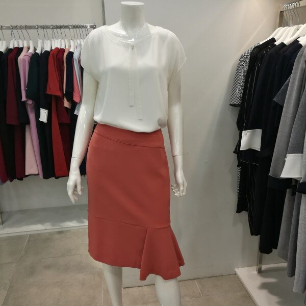 코랄컬러. 고급스러우며 한쪽꼬리프릴이 있어 아주 세련된 스타일입니다.