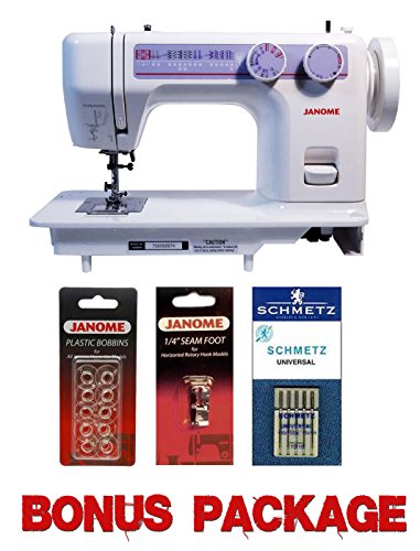 -. Feature : Bonus Bundle Includes: Janome 1/4" Seam Foot, 10 Janome Bobbins, Size 14 Needles / The Janome 712T Treadle Sewing Machine allows you to sew with no electrical power. / The Janome 712T sewing machine has 10 utility stitches plus a built-in buttonhole stitch, and a flatbed design to fit existing sewing cabinetry. / The Janome treadle has a top-loading bobbin system and the handy threading guide makes changing top and bottom thread easy. / A treadle operated sewing table (not included) is required to run machine.