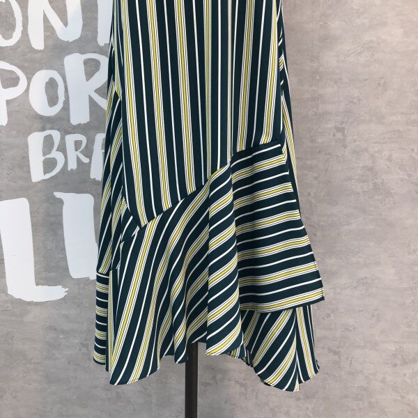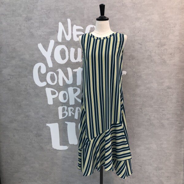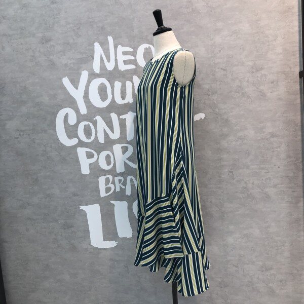 사이드슬릿의 플라운스 헴라인이 페미닌하며 레이스업 리본이 러블리한 원피스입니다