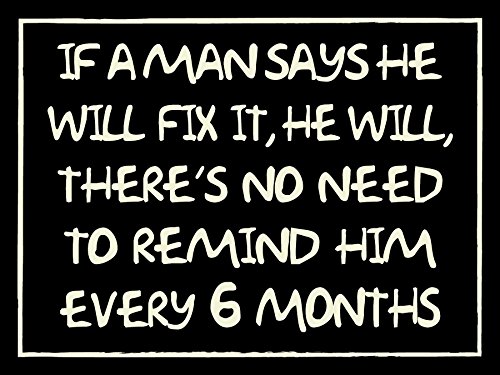 - Reads: "If a man says he'll fix it, he will, there's no need to remind him every 6 months"
