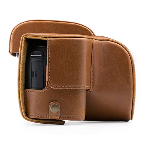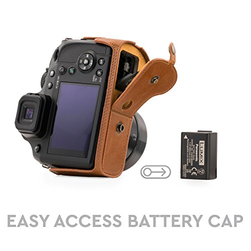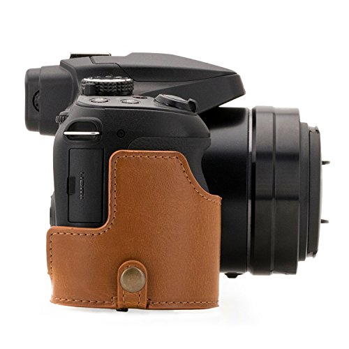 MegaGear Immer bereit Leder Kameratasche - Einfach zu Installieren, Stativ und peripheren Freundlich Zubehor - Kompatibel mit Panasonic Lumix DC-FZ80, FZ82
