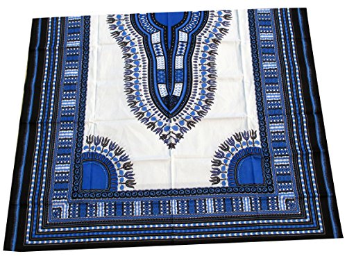 RaanPahMuang African Dashiki White Cotton Fabric Suitable for 1 Shirt Design, Blue