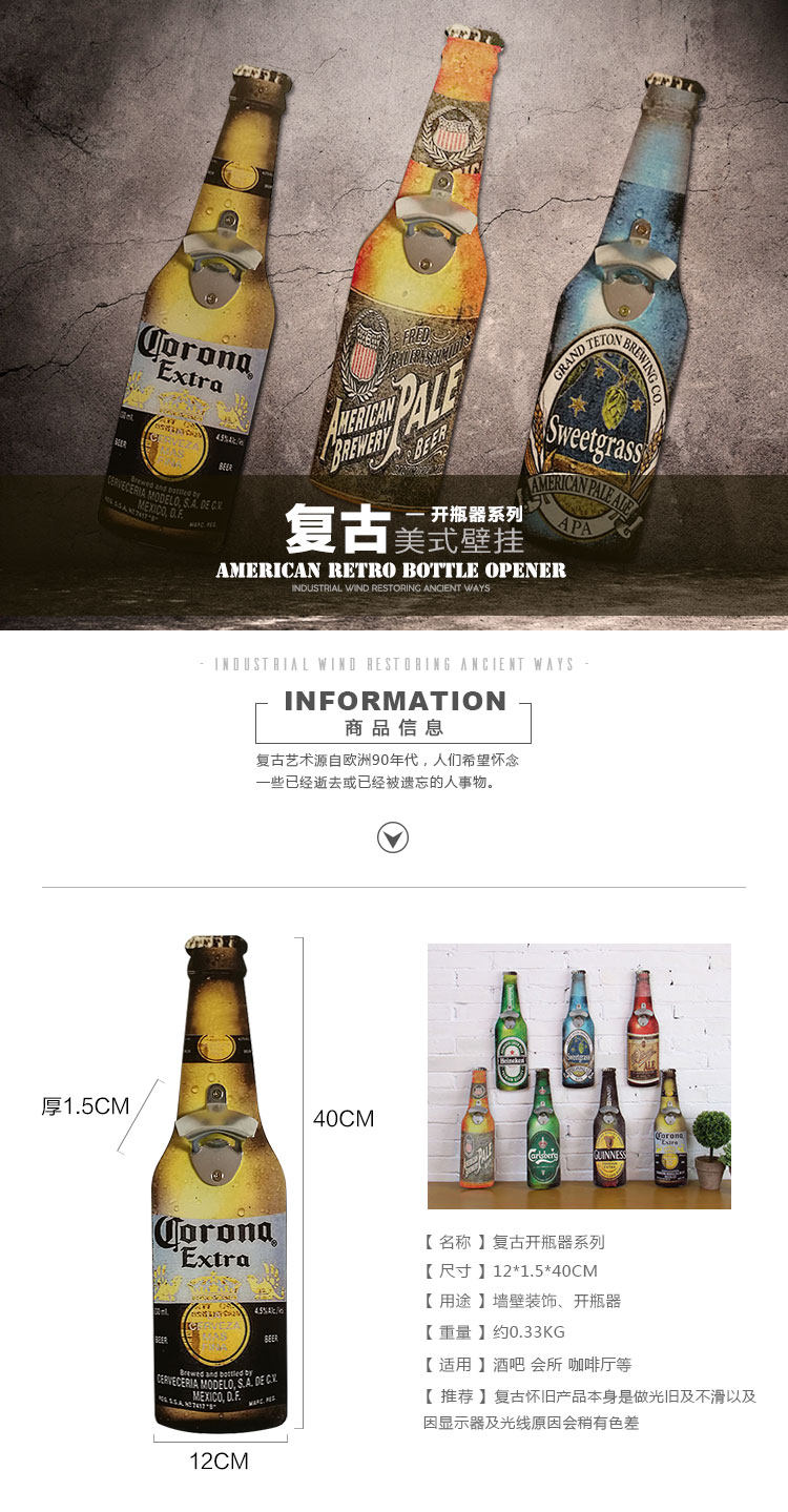 复古美式啤酒开瓶器壁挂创意酒吧家居挂饰餐厅店铺壁饰墙上装饰品