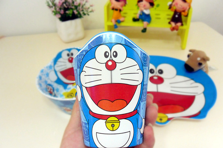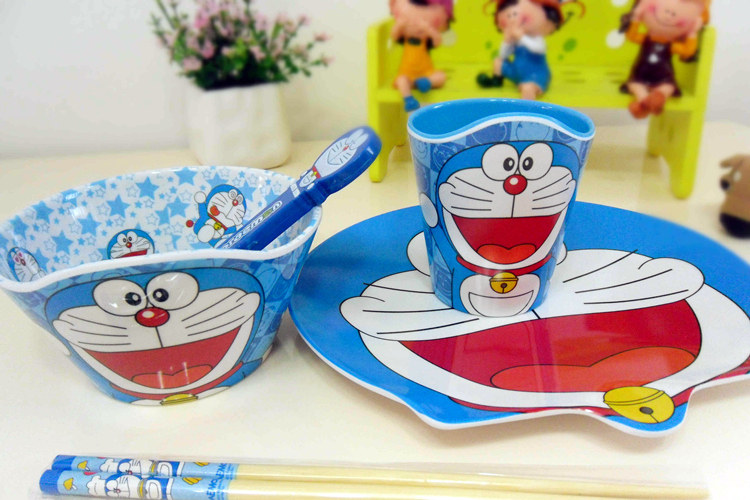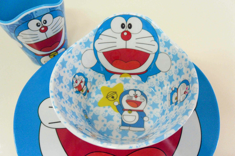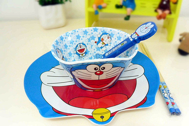 Super cute super Meng of a set of Doraemon tableware, melamine material, imitation porcelain fell not broken (this material is safe non-toxic, no smell)