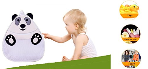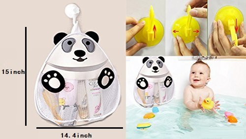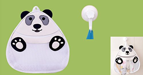 (Panda) Bath Toy Organizer Net Bag heavy duty suction cups,Safe Mildew-Free,Perfect Toddler Ba...