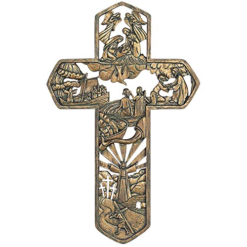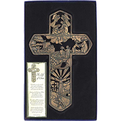 Life of Christ Stories Carved Woodgrain 11 Inch Resin Hanging Wall Cross