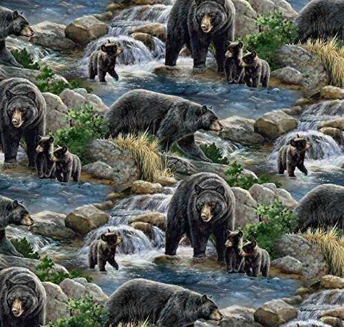 Wild Wings Cool Waters Bear Scenic Cotton Fabric, Multi