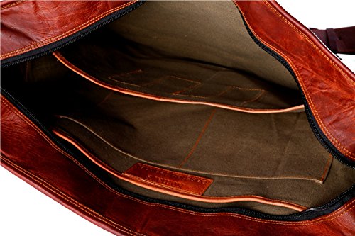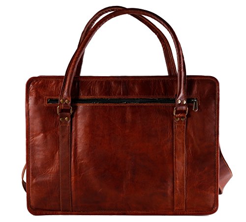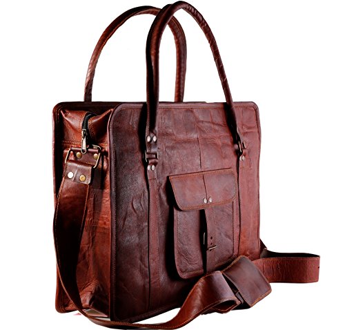 Studio : Komal's Passion Leather Publisher : Komal's Passion Leather Binding : Electronics Product Description 100% genuine leather with durable inner canvas lining and antique look accessories, Size 18" width x 13" height x 5" depth. Well suited to carry travel gear, shopping items, laptop's, files, other personal belongings etc. Big Front pocket for carrying mobile, cash etc. Genuine handmade product made from chemical and dye free leather. Veg tanning using natural edible oil and Sun tanning used for obtaining shades. Bag gives a wonderfully unique and antique look with use. A nice travel bag option and a perfect companion and gift for your close ones. Each bag has a unique texture and look as its handmade 0