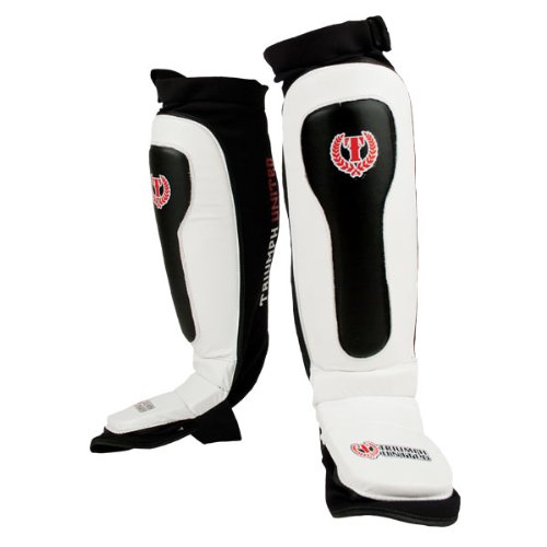 [Description] Pre-curved leather slip on style shin guard features elevated padding at shin for ultimate protection Neoprene backing slips over the leg with reinforced slit at lower calf Adjustable hook and loop closure behind the knee and 2`` elastic foot straps secure a super snug fit Signature 2 tone design with iconic graphics Aerated mesh inset for ventilation Aerated mesh inset for ventilation.