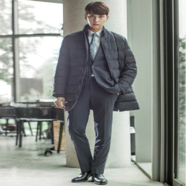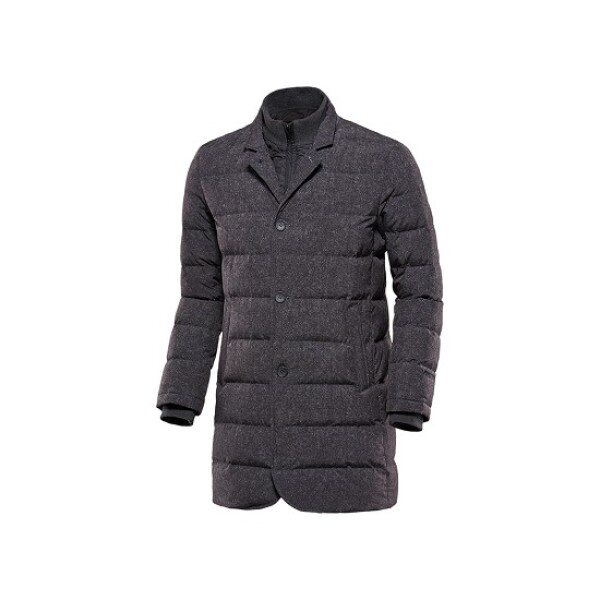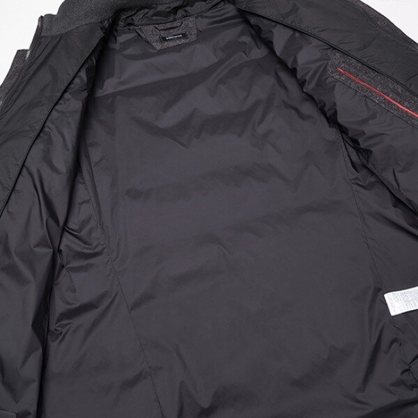 코트형 멜란지 남성 중량 롱 다운 자켓어반 코트형 다운 자켓으로 세련된 멜란지와 트윌 프린트 소재 적용하여 포멀한 스타일로 여행 및 비지니스 웨어로 착장 가능 소매 립 적용하여 찬 공기의 유입을 차단 스탠 카라형과 포멀한 형태의 테일러드 라펠 스타일로 연출 가능