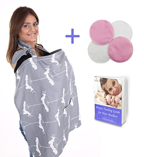 BEST DEAL MOTHERS DAY! Highest Quality Baby Nursing Breastfeeding Udder Cover Wide Hooter Hider+FREE Ultra-soft Nursing Pads& EBook by Shaashaa.