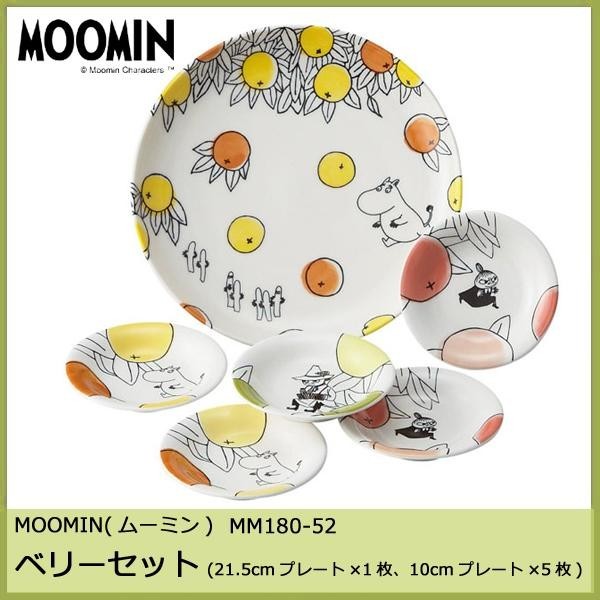 ムーミンのキャラクター達が描かれた丸皿セット♪柔らかな色使いのお皿が食卓に優しく彩りを添えてくれます。 製造国:日本 素材・材質:磁器 仕様:食洗機使用可電子レンジ使用可 セット内容:大プレート(約Φ21.5cm)×1小プレート(約Φ10cm)×5 ※サプライヤー直送品 ご注文後3~4営業日後の出荷となります【商品名】MOOMINムーミン シトラスドットシリーズ ベリーセット21.5cmプレート 1枚、10cmプレート 5枚 MM180-52