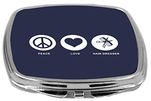 Rikki Knight Peace Love Hair Dresser Design Compact Mirror, Blue, 2 Ounce