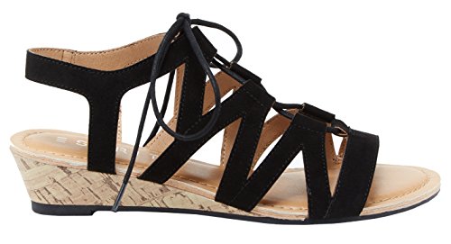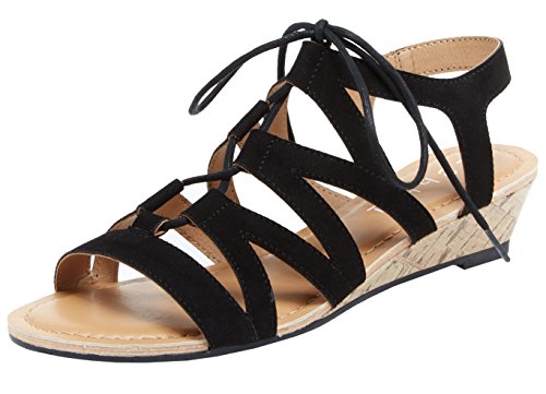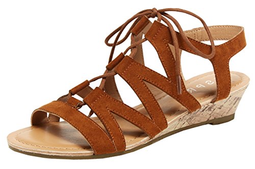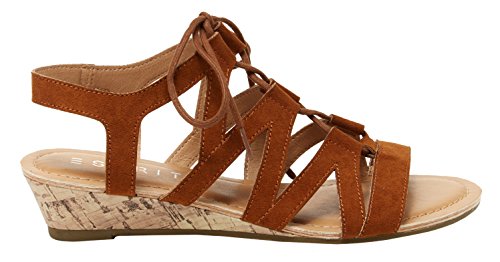 Esprit Women's Carey Geometric Laser Cutout Ghillie Lace Up Cork Wedge Sandal