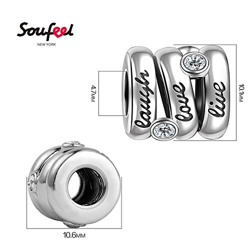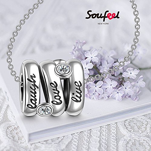 ✿ This sterling silver charm is made up of three beads connected with Swarovski crystals. With "live,love,laugh" engraved in it, the charm is a lucky piece to wish you love and laugh in your life.