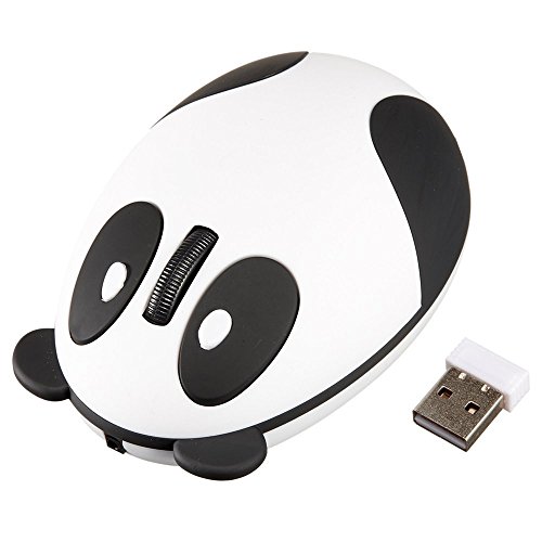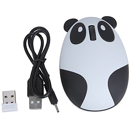 -. Feature : Very Cute and Very Functional,Children should be love it! / It has two EYES, that are used as the left click and right click buttons, and a scroll button for its nose;Plug and Play, the operating distance up to 10 meters. / Rechargeable wireless type. Built-in rechargeable lithium-ion battery,very convenient to use, dispense with frequent battery replacement trouble, comes with a recharging usb cable. / New novel type of wireless mouse, comes with a receiver,transmission distance is up to 10m, meet the need of fluent operation. / Designed specifically for female users or kids who have small hands.Special panda design, super cute and stylish. You deserve it!