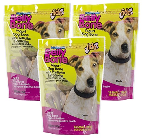 -. Feature : (3 Pack) Belly Bone Yogurt Dog Bone, Small, 13 Bones each / For dogs 19-34 pounds / Prebiotics and Probiotics help improve digestive health / Contain natural ingredients like antioxidants, omega fatty acids and essential amino acids / Unique V-groove design massages gums & teeth