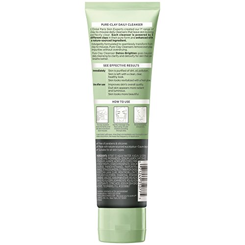 ReleaseDate : 2017-03-06 Studio : L'Oreal - Skincare Publisher : L'Oreal - Skincare Binding : Health and Beauty Product Description L'Oreal Paris Skin Experts created our 1st range of clay-to-mousse daily cleansers that leave skin looking perfectly clear. Each cleanser is powered by 3 different clays in their pure form and enhanced with a nature-sourced ingredient. Indulgently formulated to seamlessly transform from clay-to-mousse, Pure Clay Cleansers remove everyday impurities without over drying. Pure Clay Cleanser Detox-Brighten goes beyond daily cleansing to clarify and detoxify for skin that can breathe better. Immediately skin is purified of dirt, oil and pollution, and is left with a clean, clear healthy look. Skin looks revitalized with a fresh glow. Use after use, skin's overall quality is improved. Dull skin appears more radiant and luminous. Skin looks more beautiful. 0