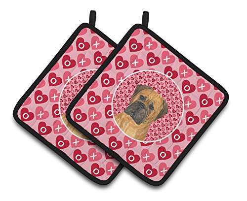 Caroline's Treasures Bullmastiff Hearts Love & Valentine's Day Portrait Pair of Pot Holders SS4517PTHD, 7.5HX7.5W, Multicolor