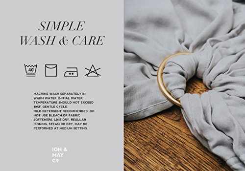 Studio : ION MAY Publisher : ION MAY Binding : Baby Product Product Description BABY SLING by ION x MAY We created a truly high quality, fashionable soft baby ring sling. 100% natural, we handpicked our manufacturers and sourced the fabric, to give you blanket-like softness with our Bamboo Cotton fabric. It's also very breathable because it's crafted out of three layers of soft gauze, making it perfect to wear and use on those warm summer days, when indoors, or at home, but still thick enough to provide warmth in winter. BABY CARRIER for ADVENTURES With our ring sling you can go anywhere a baby stroller can't go. Enjoy being hands-free again and move around comfortably, without instant physical exhaustion. You can now also breastfeed anywhere. Using a baby ring sling also has medical benefits, like preventing plagiocephaly (baby flat head syndrome), improving breast milk production, weight loss increase (due to physical exercise) and increasing baby's awareness and feeling of safety, through proximity. BABY SHOWER READY and FASHIONABLE We created our ring sling also with fashion in mind, offering it in two essential and beautiful natural colours that will complement your daily outfit. IYou can select between hazy PORTLAND GREY and majestic WASHINGTON BLUE colour, or you can go with both. Our baby ring sling also comes with a FREE CARRY BAG, so you can tuck it in when you're not using it, or to store your baby gear in it. It also makes for a perfect baby gift for a baby shower. SAFETY WASHING Safety is our highest concern, so we added a pair of durable aluminium gold rings that provide confident and safe baby carrying for infants or even toddlers up to 30 pounds. The fabric, although very soft, is not stretchy like on baby wrap, making it easier to firmly carry your baby. You can clean our ring sling easily - just machine wash it, we recommend using baby skin friendly mild detergent. 0