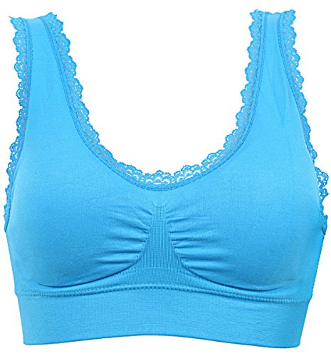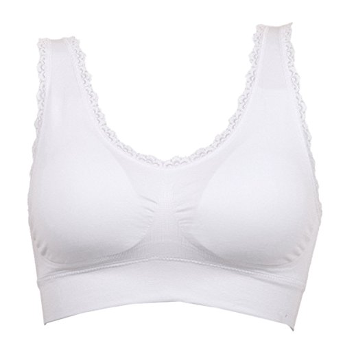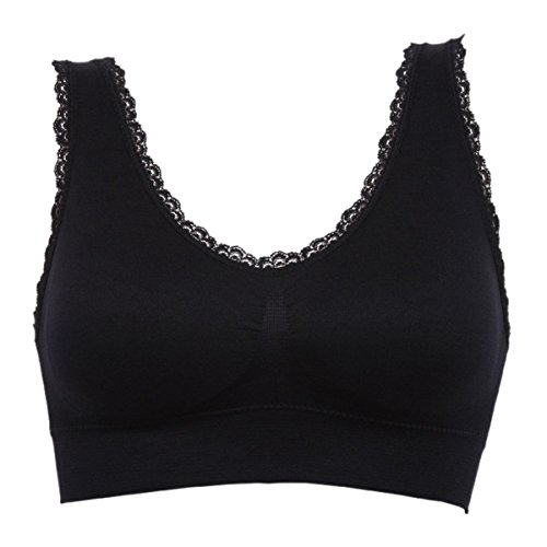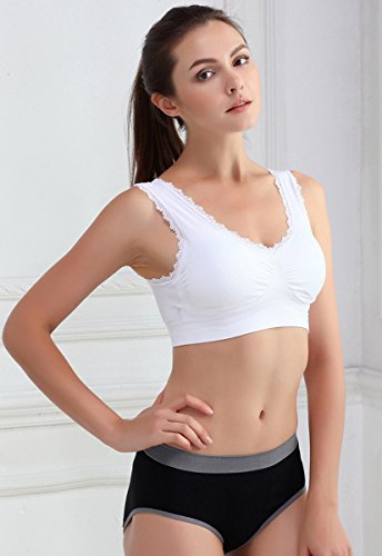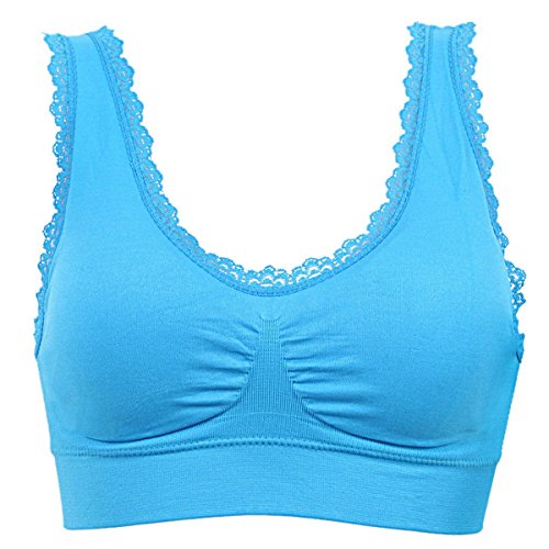 -. Title : FEOYA Women's Lace Trim Sport Bra Pullover Wirefree Padded U-Back Yoga Gym Vest