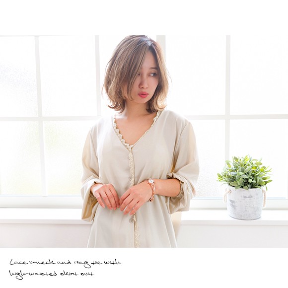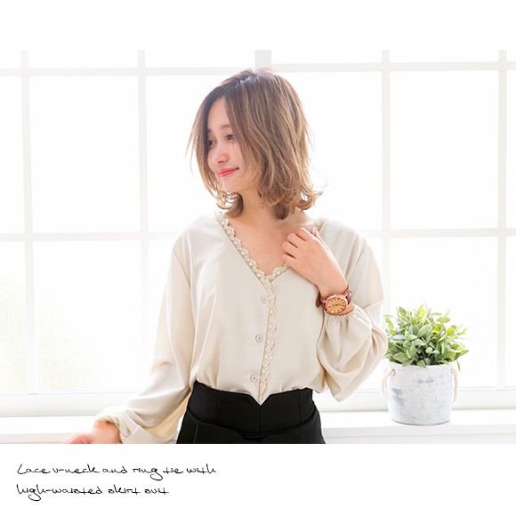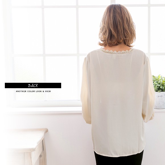 ◆商品紹介◆ ゆるめのシルエットが大人可愛いブラウスです♪ スキニーにやミニスカートにインして華奢見え効果あり★ロングスカートと合わせてレディな印象に♪◆素材感・サイズ感◆サラサラ・柔らかい[素 材]ポリエステル100%[伸 縮]なし[透け感]あり[裏 地]なし ◆モデル◆・身長153cm・フリーサイズ着用 ※お客様の体型や身長により写真のモデルとの着用感に多少の違いが出る場合がございます。 ◆サイズ◆ ※サイズ詳細は平置きで測った際のサイズとなっておりますので多少の誤差(約2-3cm)は予めご了承下さい。総丈:約61cm 肩幅:約40cm 袖幅:約30cm 袖丈:約54cm バスト:約108cm 袖口:約16-26cm ※画像の色味はお使いのパソコンやスマートフォン等モニター環境により実際の色味とは若干異なる場合がございます。