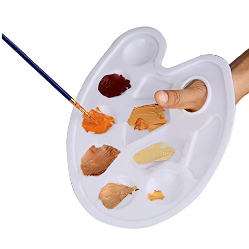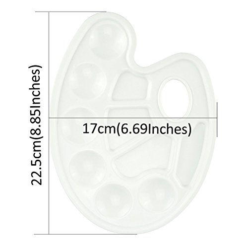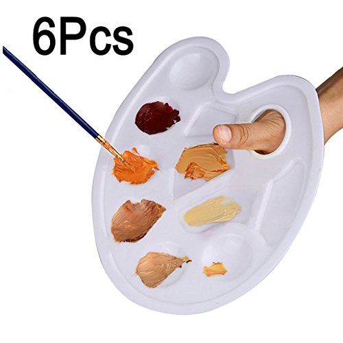 -. Feature : Qty : 6PCS / Size: 9"(L)* 7"(W). Weight: 0.05KG. Material: Plastic. / Suitable for all water based media. Different size and design wells for mixing colors. Works for oils and especially for acrylic or watercolor paints. / Ideal for amateur painters, art classes / lessons, small paint projects, kid's painting projects / parties, and a great gift for friends / kids. / 10 Wells Thumb Hole