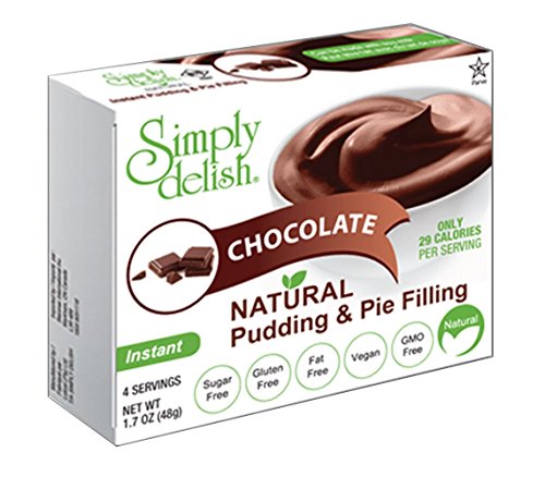 Simply delish Natural Chocolate Pudding Dessert, Sugar free, 1.7 oz., 24-6 packs – Fat Free, Gluten Free, Lactose Free, Non GMO, Kosher, Halal, Dairy Free, Natural
