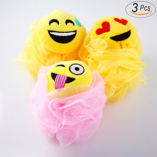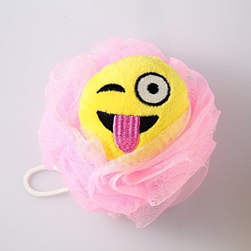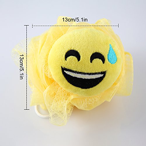 Hisight Bath Shower Sponge Emoji-Pop Smiley face Plush Pillow Universe Pouf Mesh Kids Toy Brush Shower Ball , Mesh Bath and Shower Sponge,cartoon...