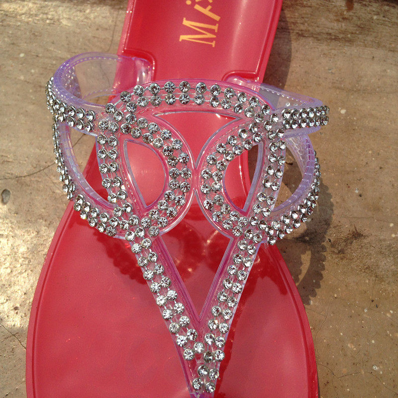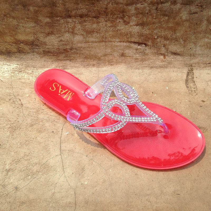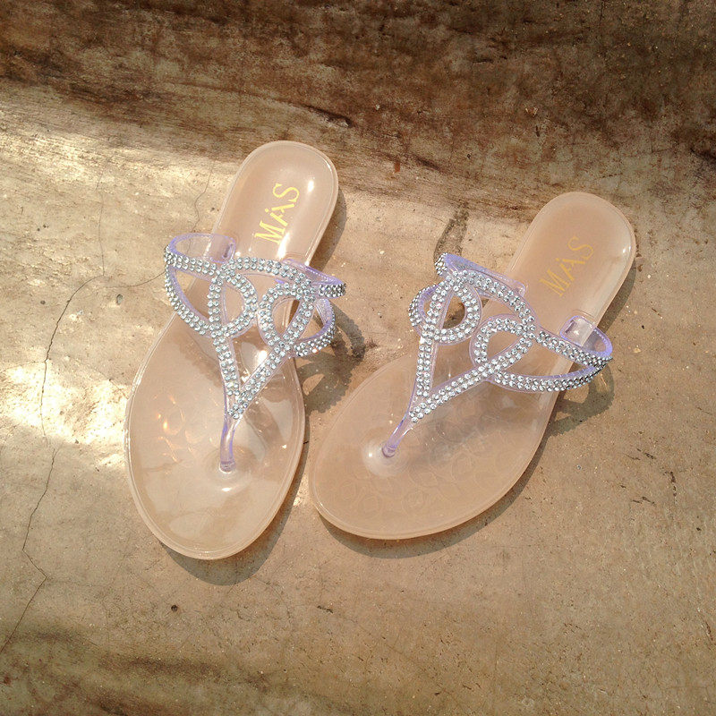 夏季新款欧美版果冻人字拖水钻平底夹脚沙滩凉鞋