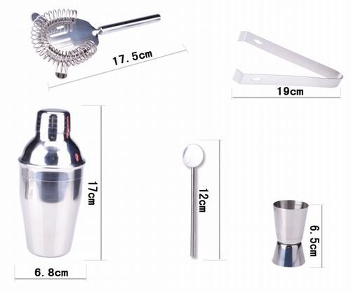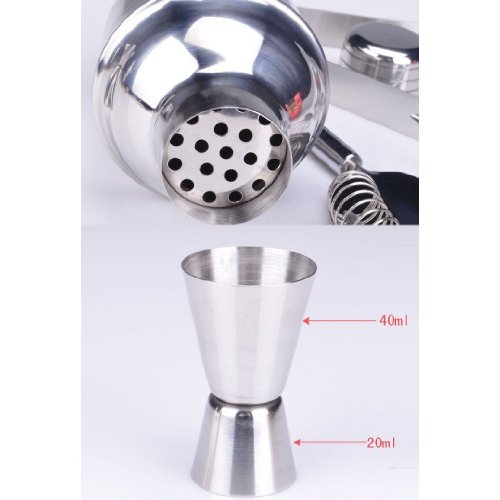 Enjoy a cocktail making at home it is a full set of such as shaker and major cup. ★ cocktail shaker capacity 350ml ★ major cup capacity 20ml & 40ml ★ ★ strainer muddler ★ lemon slicer or more sets. Gifts and to the person who thirsty is ideal for home party. ※ There might be rubbing such as in a box.