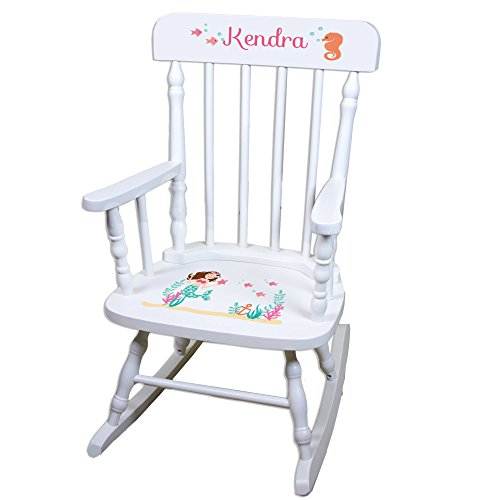 Studio : MyBambino Publisher : MyBambino Product Description Our MyBambino personalized brunette mermaid princess white childrens rocking chair makes a wonderful toddler or baby gift. Sturdy contruction and beatiful design come together to form a tradional staple of any child's nursery or room. 0