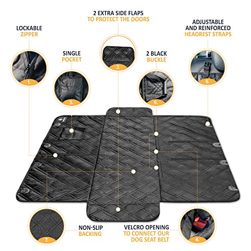 Did you know that the first 30 minutes after being left alone is usually the most stressful time for the majority of dogs? This was our first thought when we designed our GloBal Car Seat Cover. There's no need to leave your friend at home when you take a road trip.?Your dog will be happy and you will save time and dollars from car cleaning. Product Details: ?Heavy Duty Material: Our dog seat cover is made from 4 layers: 600D oxford fabric, cotton layer, 100% waterproof and washable polyester, PVC non-slip soft rubber and full embroidery. This will keep your car safe from pet claws, stains and liquids; ?2 Black Buckle and Non-slip Backing To Secure Your Cover In Place: The cover is also securely anchored in the back seat, no matter how much your pet is moving, seat cover will stay in place; ?Velcro Opening: ?to connect our dog seat belt; ?Lockable Zipper in the middle for your pet safe; ?One Pocket; ?4 Adjustable and Reinforced Headrest Straps; ?Extra Side Flaps; ?Size: Universal Fitting: Measuring approximately 54x57 inches, it is designed for the backseats of all standard cars, trucks and SUV. It can be fitted as standard bench coverage, hammock style or even half/half due to the slide-proof middle zipper. BONUS:?Collapsible Travel Dog Bowl Dog Seat Belt Quality Testing:We use our GloBal Pet Seat Cover with our own pets, so it’s in our interest to provide you the absolute best quality. Just click ADD TO CART right now and take your little friend wherever you go! Your pet deserves it! ? 0 |