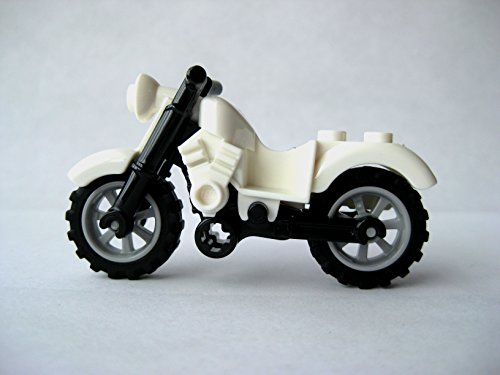 -. Feature : Genuine Motorcycle (White Harley Style) / Loose Minifigure Vehicle pulled from new set and sealed in individual packaging / This motorcycle measures approx. 3" long by 1.5" tall and fits any Minifigure perfectly / This motorcycle consists of 6 easy to assemble pieces / Choking Hazard for children 3 and under