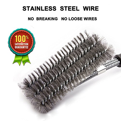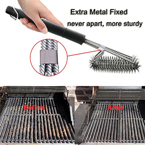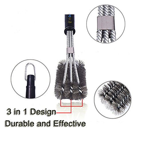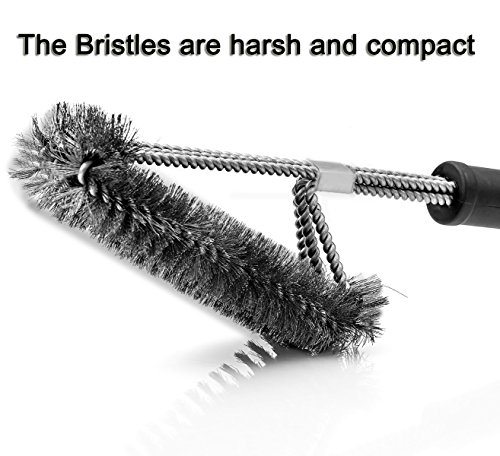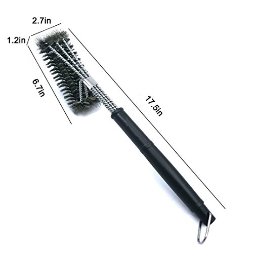 ❤EFFORTLESS CLEANING: With a unique design, this 18" long barbecue brush has three brushes in one, each with its own equivalent stroke. Be prepared to clean every bit of residue with its inovative 360 degree rotator.