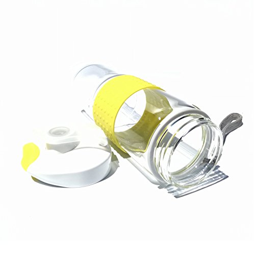-. Title : Top Quality Environmental Glass Water Bottle Borosilicate Silicone Sleeve Sports Drinking Cup with Flip Top Lid Spout Cap Carrying Handle, 18.5 oz in Yellow, Gray, Blue, & Pink Colors