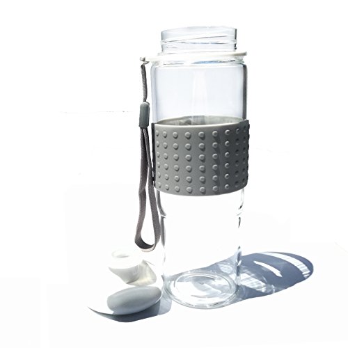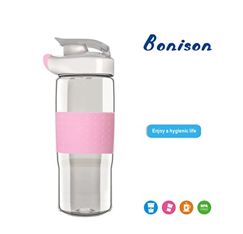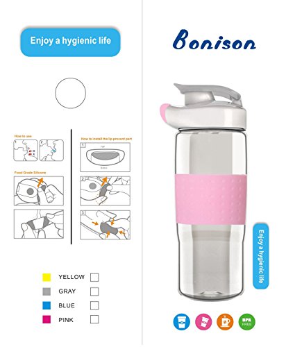 -. Feature : [High-Quality & Durable] Not easily broken shatter-resistant Borosilicate Glass; Thick, transparent, and beautifully crafted glass with curvature to fit comfortably in cup holders. Not to thick to cause heavy weight discomfort when using but thick enough to feel comfortable as an everyday bottle. Hot or Cold Use - Use caution and allow bottle to cool. Sleeve does not provide insulation or extreme heat protection. / [Convenient] Carrying handle attached to plastic band around the top to hold in position without pulling off of the bottle. Perfect bottle for travel, home, and play. Slip hand inside strap to hold bottle while carrying books, grocery, or baby. 2 inches of sleeve with gripping bubbles to offer slip resistance. CLEAN - Hand wash recommended - top rack dishwasher safe / [Leak Proof] Silicone ring inside of cap to prevent leakage. Strong flip top seals over spout preventing liquids from leaking in your gym bag, beach bag, Bonison reusable shopping bag, etc. SIZE - 18.5 oz/550 ml; 9 inches tall, 3 inches wide for bottle racks, 2.5 inches bottom for cup holders. Wide mouth 2 inches for ice, fruits, smoothies, etc. / [Non Toxic - Safe to Use] BPA Free & PFOA Free - Bottle cover sleeve and comfort lip are comP.R.Ised of 100% silicone. The PP plastic top and cap are made of FDA approved materials that will not leach toxins into your drink beverages. Freezer Safe for chilling but do not over fill and do not freeze frozen to crack the glass. Not made for sparkling carbonated drink usage. / {GIFTS} "Where did you get that from?" When you hear those words, please don't hesistate to share with them about our Bonison Glass Water Bottle. Bonison strives to excel in releasing the best in style and quality with comparable competitive P.R.Icing! Give as a gift and keep one for yourself. Arrive in a nice box with care instructions and the look and feel of QUALITY! Available in yellow, gray, blue, and pink.
