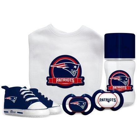 -. Binding : Misc. -. Brand : Baby Fanatic -. EAN : 0817407024771 -. Feature : Get your little one started on the road to fandom with this officially licensed gift set from Baby Fanatic. It includes a bib, bottle, high-top shoes and 2 pacifiers. Each item is 100% BPA free - and is boldly decorated with colorful team graphics and colors. The pacifiers and bottle feature a silicone nipple while the bib is 100% cotton with a velcro closure and embroidered logo. Pre-walkers slip on and feature team -. IsMemorabilia : 0 -. Label : Baby Fanatic -. Manufacturer : Baby Fanatic -. MPN : 43224-4054 -. NumberOfItems : 1 -. PackageQuantity : 1 -. PartNumber : 43224-4054 -. ProductGroup : Baby Product -. ProductTypeName : BABY_PRODUCT -. Publisher : Baby Fanatic -. Studio : Baby Fanatic -. Title : NFL New England Patriots 5-Piece Baby Gift Set -. UPC : 817407024771
