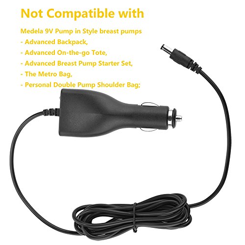-. Feature : Blue LED Indicator - The blue LED light help to create convenient for you to locate this car lighter adapter at night; / Built-in 6.6 Feet Long DC Cable - The extra long cable gives you enough room to charge your breast pump at the back seat of your car; / Uncompromised Reliability - Meagoes intelligent circuit design protects against short circuiting, over-heating, over-current, and over-charging, and this car charger is made from fireproof and heatproof materials for your safety; / Perfect Compatibility - This Portable Vehicle Adaptor is compatible with Medela Pump-in-style Symphony, Freestyle, Single Deluxe and Lactina Breast Pumps / Important Notice: This Portable Vehicle Adaptor does not compatible with Advanced Breast Pump Backpack, On-the-go Tote, The Metro Bag, Breast Pump Starter Set, Personal Double Pump, or 9-Volt Pump in Style breast pumps